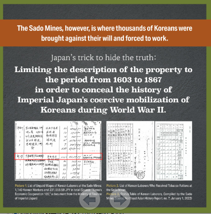 ÇöÀç ÀϺ»ÀÌ ±Ù´ë °­Á¦Â¡¿ëÀÇ ¿ª»ç¸¦ ´ã°í ÀÖ´Â ÀÚ±¹ À¯ÀûÀÎ »çµµ±¤»êÀÇ À¯³×½ºÄÚ ¼¼°èÀ¯»ê µîÀ縦 ÃßÁø Áß¿¡ ÀÖ½À´Ï´Ù.