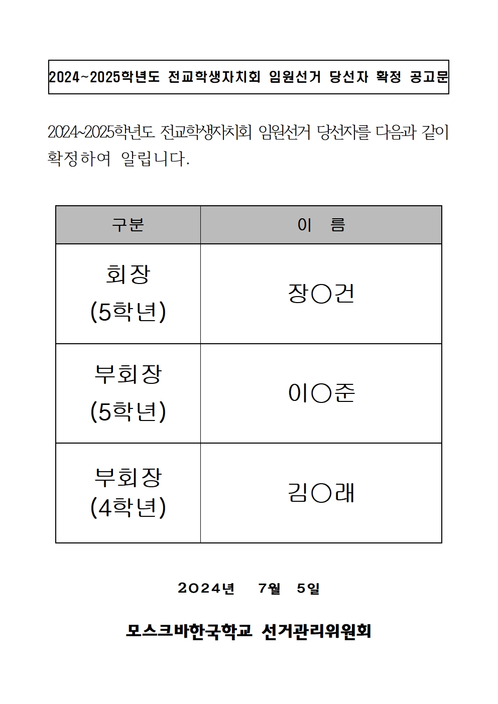 2024~2025Çг⵵ Àü±³ÇлýÀÚġȸ ÀÓ¿ø¼±°Å ´ç¼±ÀÚ È®Á¤ °ø°í