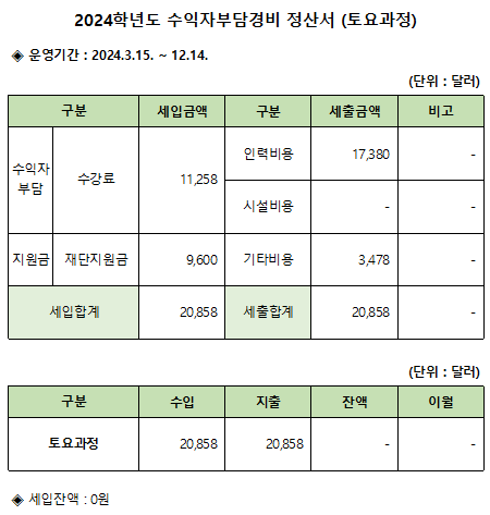 2024Çг⵵ Åä¿ä°úÁ¤ Á¤»ê ¾È³»