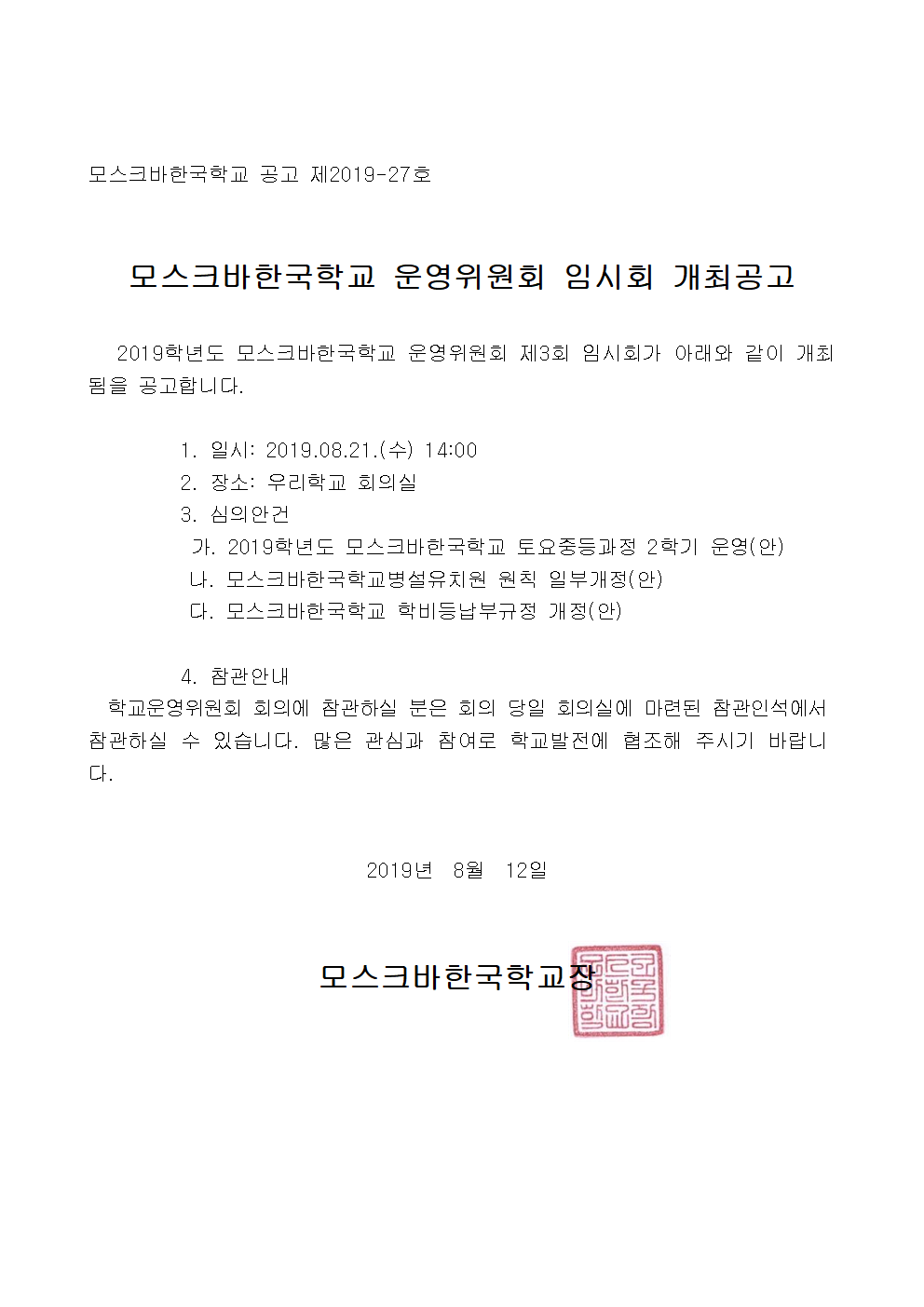 2019Çг⵵ Çб³¿î¿µÀ§¿øÈ¸ Á¦3ȸ ÀÓ½Ãȸ °³ÃÖ °ø°í