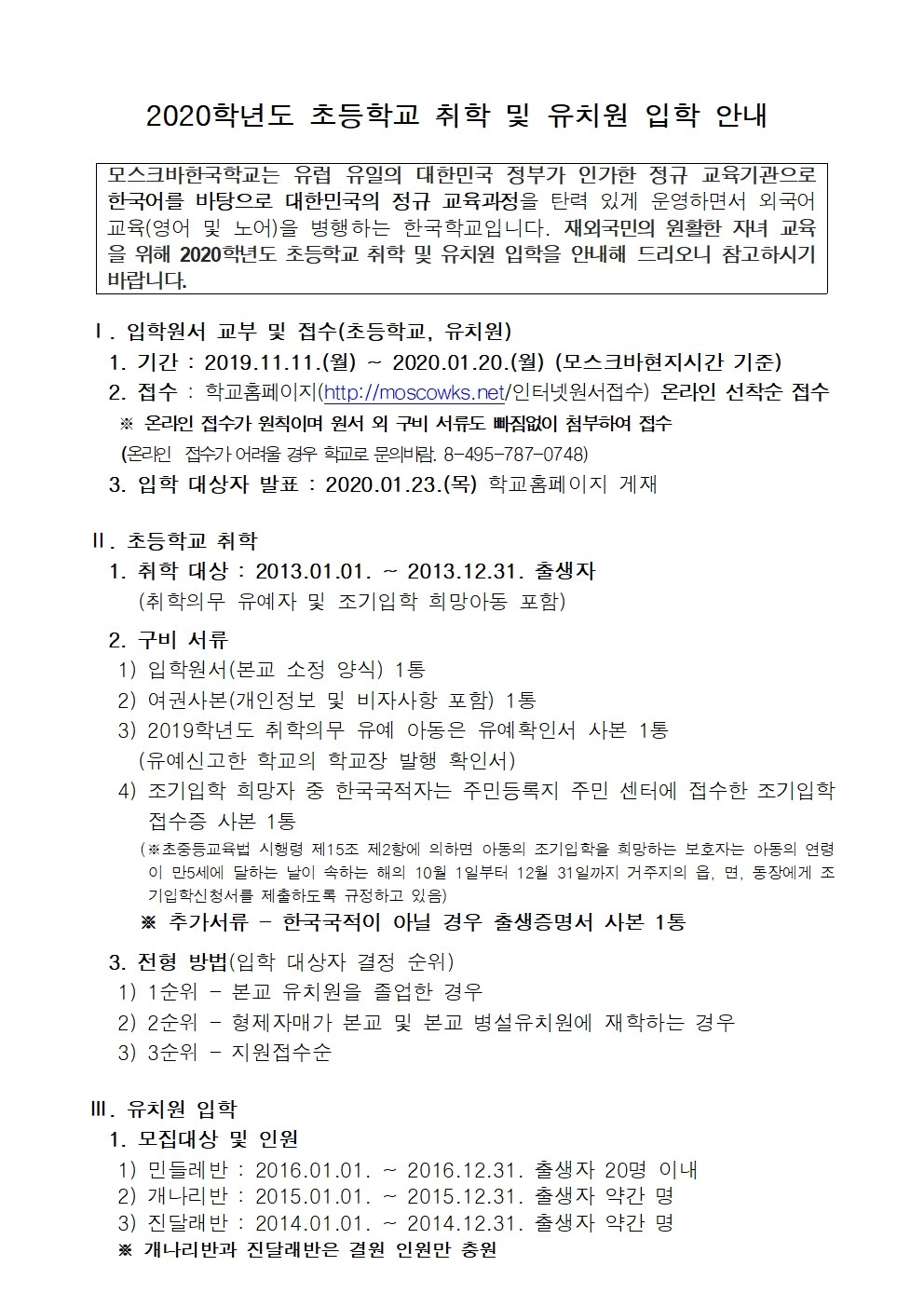 2020Çг⵵ ÃʵîÇб³ ÃëÇÐ ¹× À¯Ä¡¿ø ÀÔÇÐ ¾È³»