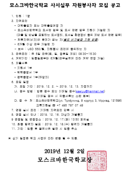 ¸ð½ºÅ©¹ÙÇѱ¹Çб³ »ç¼­½Ç¹« ÀÚ¿øºÀ»çÀÚ ¸ðÁý °ø°í