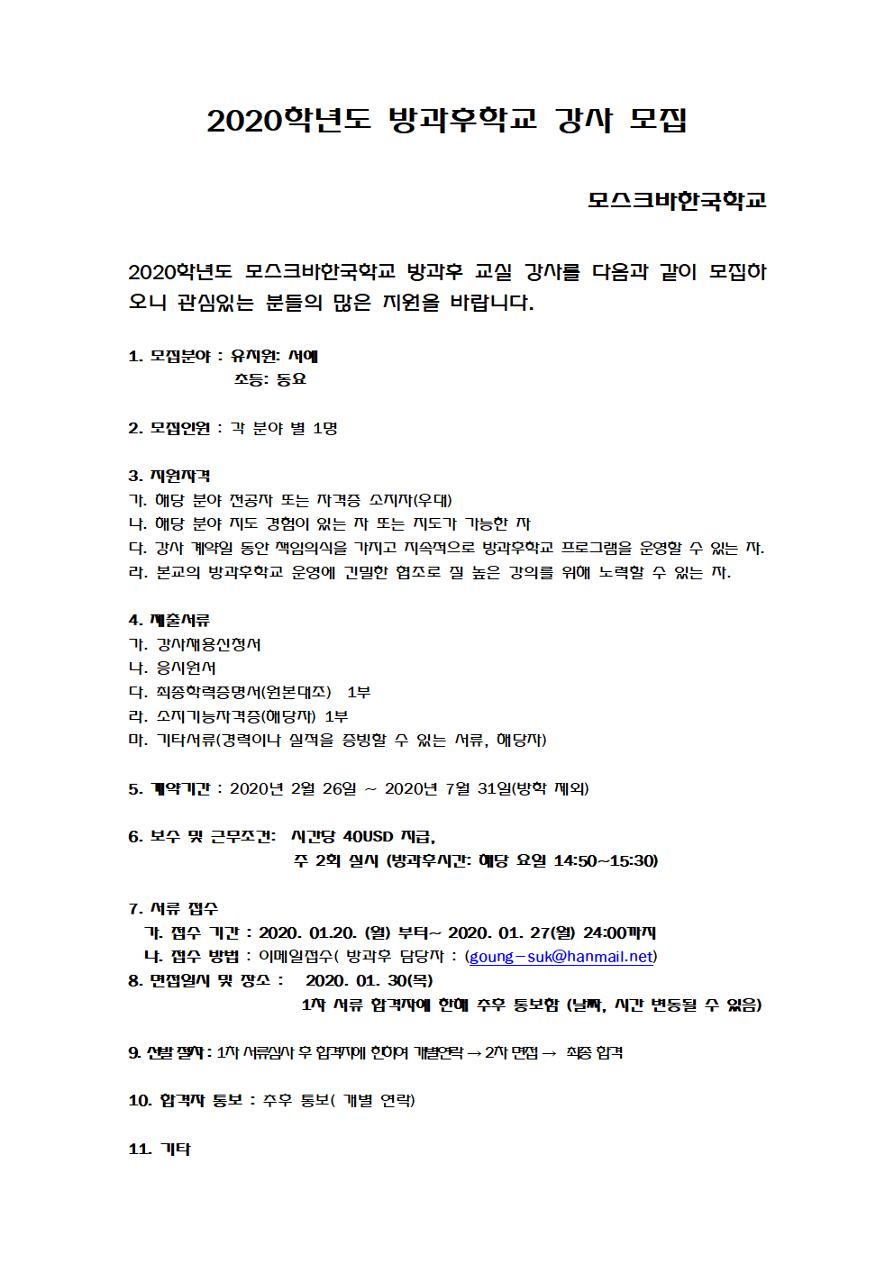 ¸ð½ºÅ©¹ÙÇѱ¹Çб³¿¡¼­´Â 2020 ¹æ°ú ÈÄ ±³½ÇÀÇ ¿øÈ°ÇÑ ¿î¿µÀ» À§ÇØ ´ÙÀ½°ú °°ÀÌ °­»ç¸ðÁýÀ» ÇϰíÀÚÇÕ´Ï´Ù. ¸¹Àº °ü½É°ú ÇùÁ¶ ºÎʵ右´Ï´Ù.