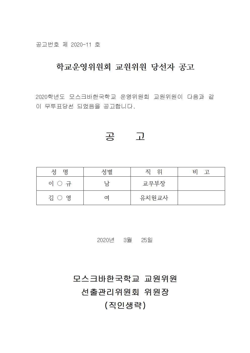 2020Çг⵵ Çб³¿î¿µÀ§¿øÈ¸ ±³¿øÀ§¿ø ´ç¼±ÀÚ °ø°í