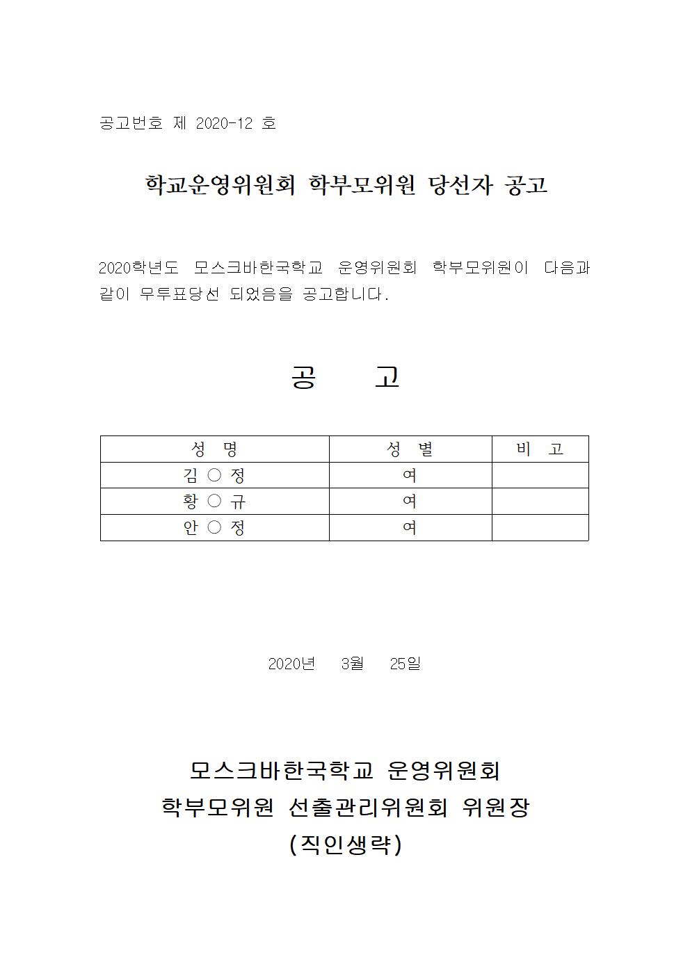 2020Çг⵵ Çб³¿î¿µÀ§¿øÈ¸ ÇкθðÀ§¿ø ´ç¼±ÀÚ °ø°í