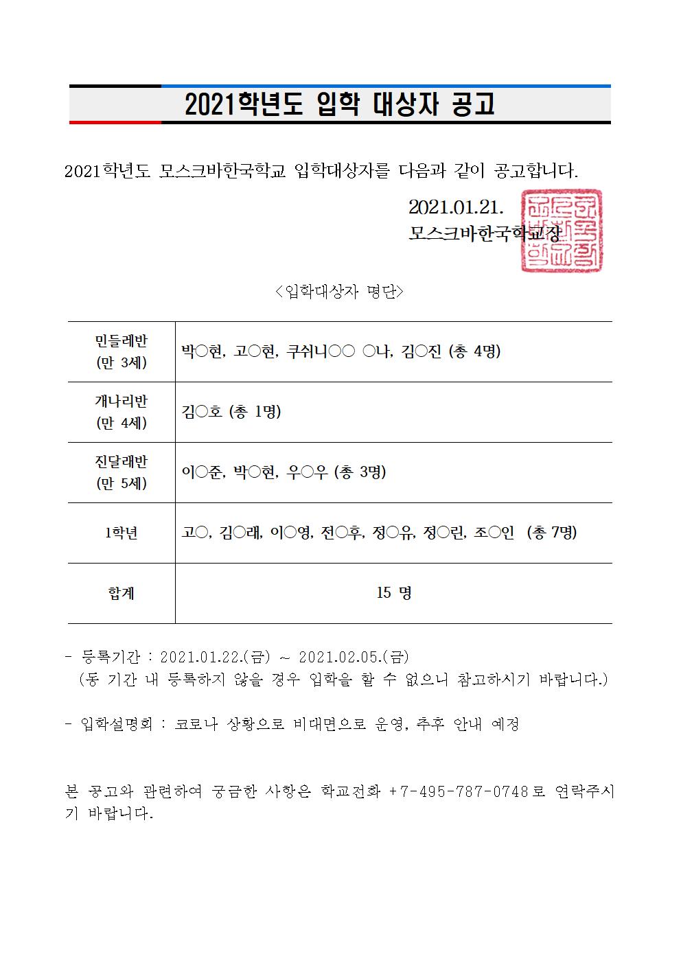 2021Çг⵵ ÀÔÇÐ ´ë»óÀÚ °ø°í