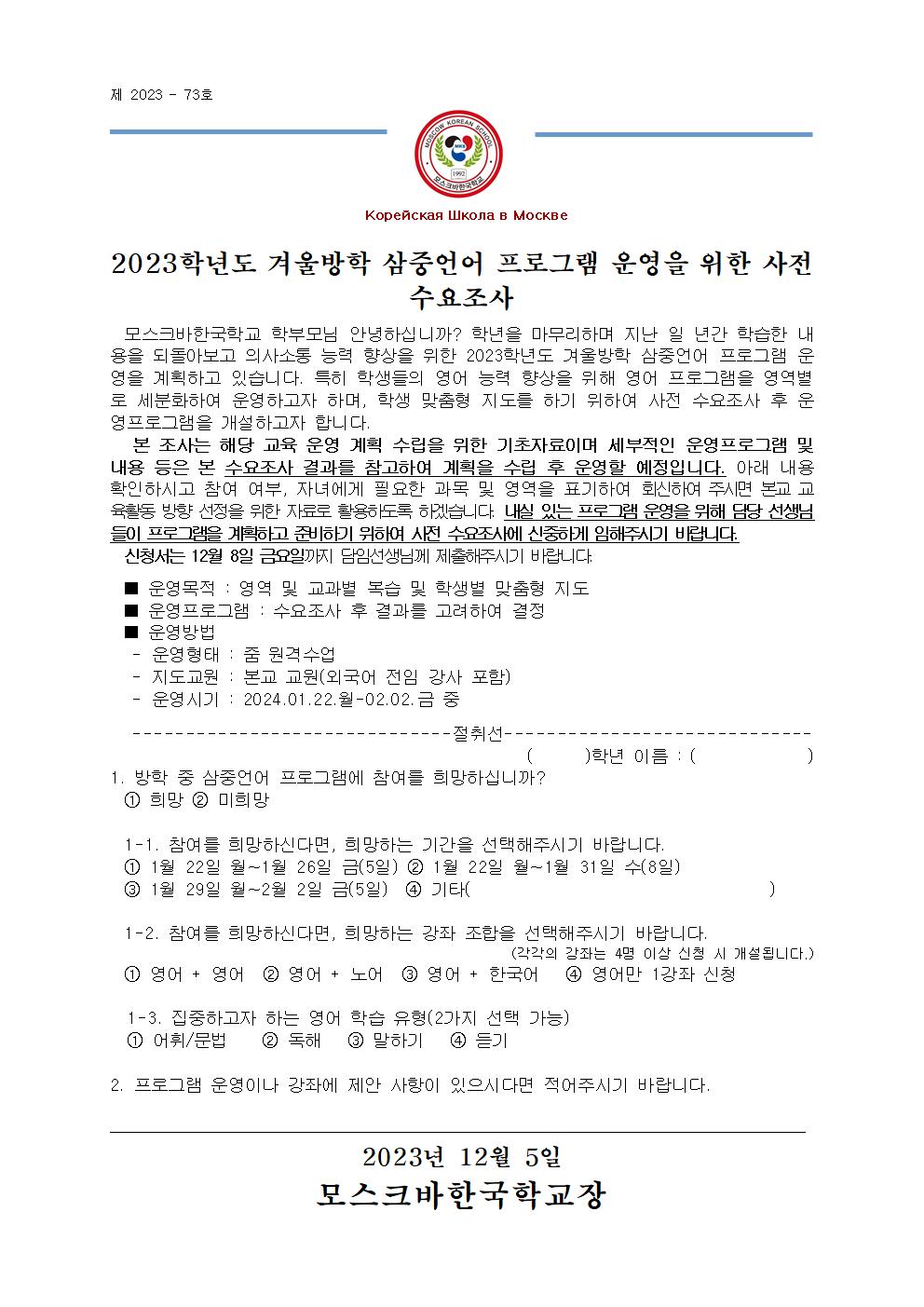 2023Çг⵵ °Ü¿ï¹æÇÐ »ïÁß¾ð¾î ÇÁ·Î±×·¥ »çÀü ¼ö¿äÁ¶»ç ¾È³»