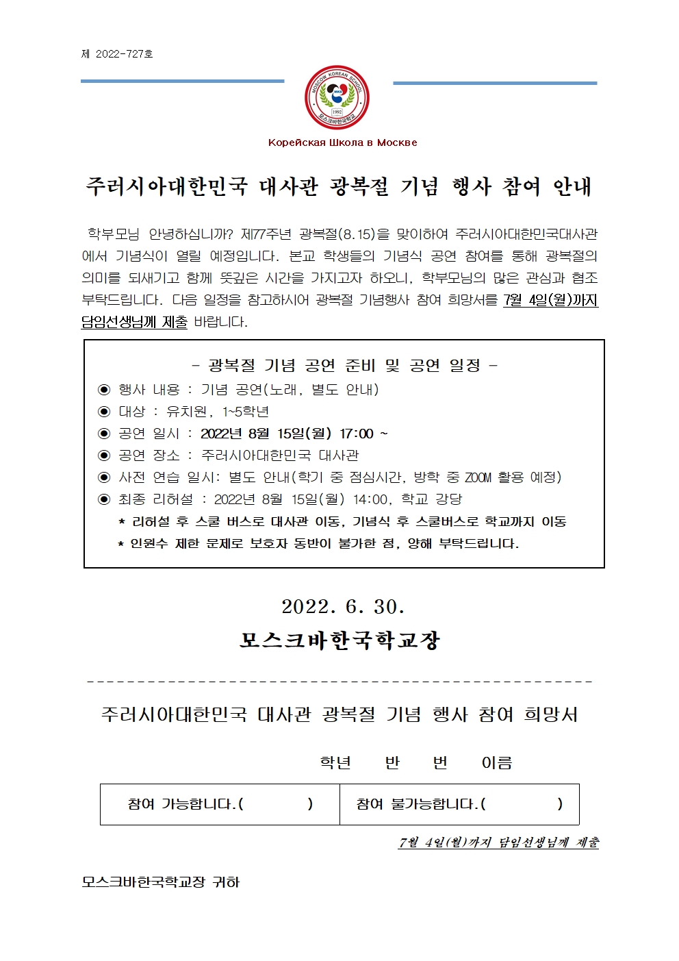 ÁÖ·¯½Ã¾Æ´ëÇѹα¹ ´ë»ç°ü ±¤º¹Àý ±â³ä Çà»ç Âü¿© ¾È³»