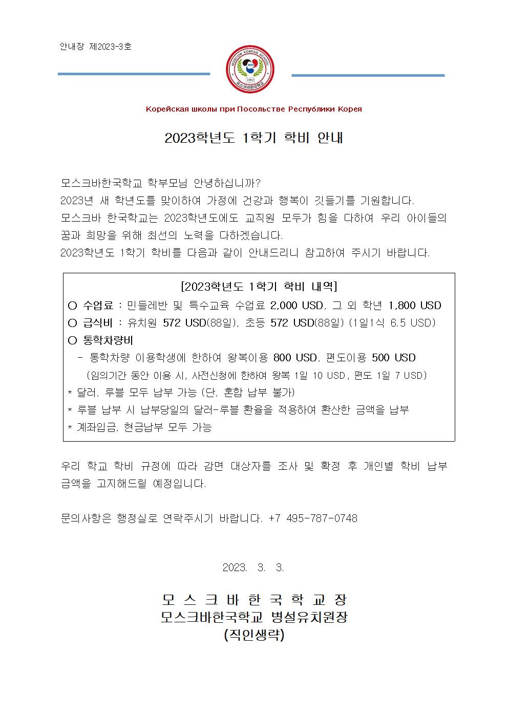 2023Çг⵵ 1Çбâ Çкñ(¼ö¾÷·á,±Þ½Äºñ,ÅëÇÐÂ÷·®ºñ) ¾È³»